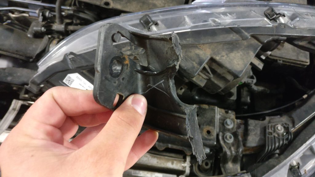 Одним из таких повреждений может быть поломка креплений фары.